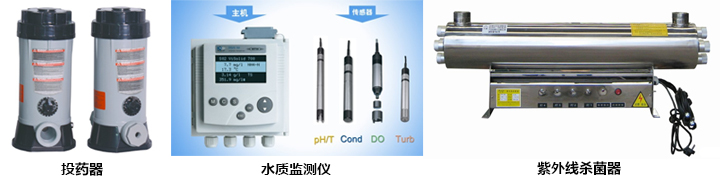消毒設備:投藥泵/器、水質監控儀、臭氧發生器、離子/紫外線殺菌器、鹽加氯器等