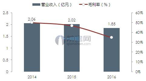 圖表3:2014-2016年古兜控股營業收入與毛利率變化情況(單位:億元,%)