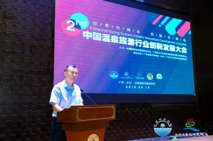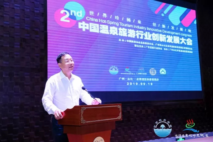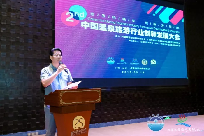 從化區文化廣電旅游體育局局長譚鴻致辭,他介紹了從化的旅游資源,表示從化將抓緊粵港澳大灣區發展機遇,加強規劃,優化資源、提升區內基礎設施,與流溪溫泉聯動發展,激發從化旅游發展新活力。