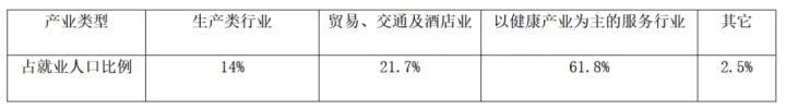 其典型代表是德國(guó)西南部黑森林地區(qū)的療養(yǎng)勝地巴德克羅欽根,全市占地面積35.66平方公里,其中綠地約18公頃,生境地2.6公頃,總?cè)丝跀?shù)為20292人,相當(dāng)于我國(guó)一個(gè)特色小鎮(zhèn)的規(guī)模。就業(yè)人口類型比可以看出,它是典型的以健康產(chǎn)業(yè)為主導(dǎo)產(chǎn)業(yè)、零售業(yè)為輔助的溫泉健康產(chǎn)業(yè)小鎮(zhèn)。(詳見(jiàn)表1)