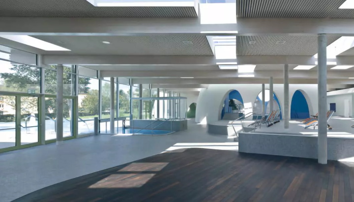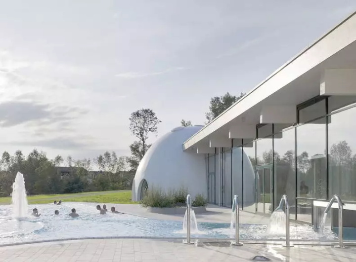 Bad Aibling溫泉中心坐落于德國慕尼黑東南部的巴特艾布靈溫泉度假村,項(xiàng)目希望通過新的溫泉浴場,相關(guān)的大型健康區(qū)和室外游泳池來補(bǔ)充其現(xiàn)有的健康和休閑設(shè)施。該溫泉集群憑借低規(guī)劃建筑密度和能耗的優(yōu)勢解決了溫泉能耗問題。