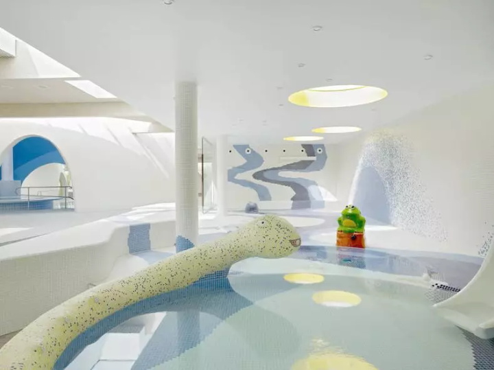 不同深度,噴泉和水上游戲的幼兒游泳池讓孩子們在親近父母的同時(shí)體驗(yàn)水。兒童更衣室和衛(wèi)生區(qū)與成人的更衣室和衛(wèi)生區(qū)相結(jié)合,毗鄰母嬰?yún)^(qū)。
