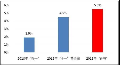 圖3 2018年“春節”、“五一”、“十一”黃金周占全年游客接待量比重