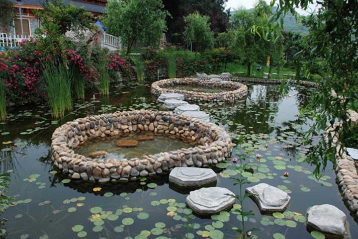 溫泉水體是溫泉景觀中的重要元素,山水結合,泡池在森林中既是泡池,也是景觀水池,如云南彌勒的湖泉溫泉,泡池依地勢而建造,溫泉設施分散在森林中,泡池以自然形態為主,純自然景石圍合,游客在森林半山中的溫泉泡浴時,可俯瞰浩渺的湖泉湖,湖光山色,景觀獨特,體驗自是不同。