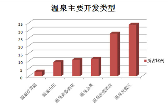 據《中國溫泉旅游產業發展報告(2014)》統計,目前中國內地溫泉旅游開發模式多樣,但溫泉度假區是最廣泛的一種開發模式。
